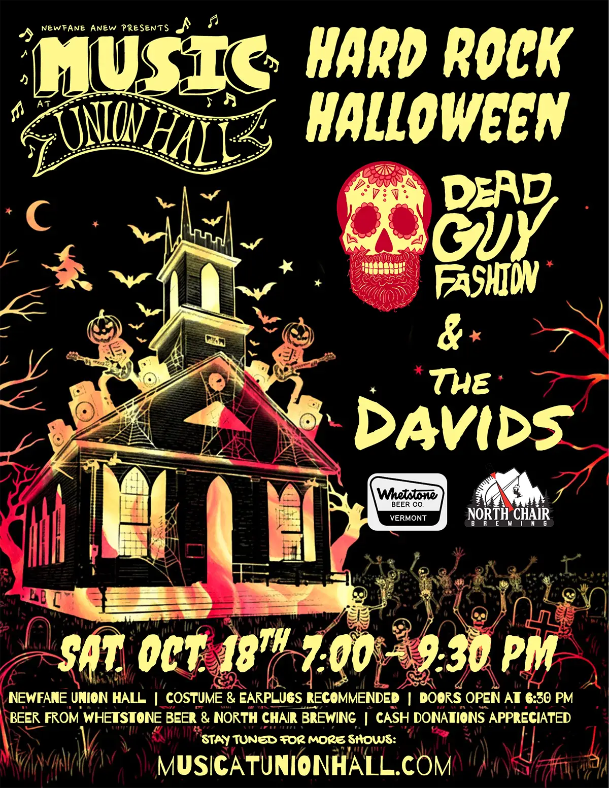 We recommend costumes and earplugs for maximum enjoyment of our October show: HARD ROCK HALLOWEEN! Get ready to rock on Saturday, October 18th. Local bands The Davids and Dead Guy Fashion are ready to BRING IT, so we hope you're ready to take it🤘